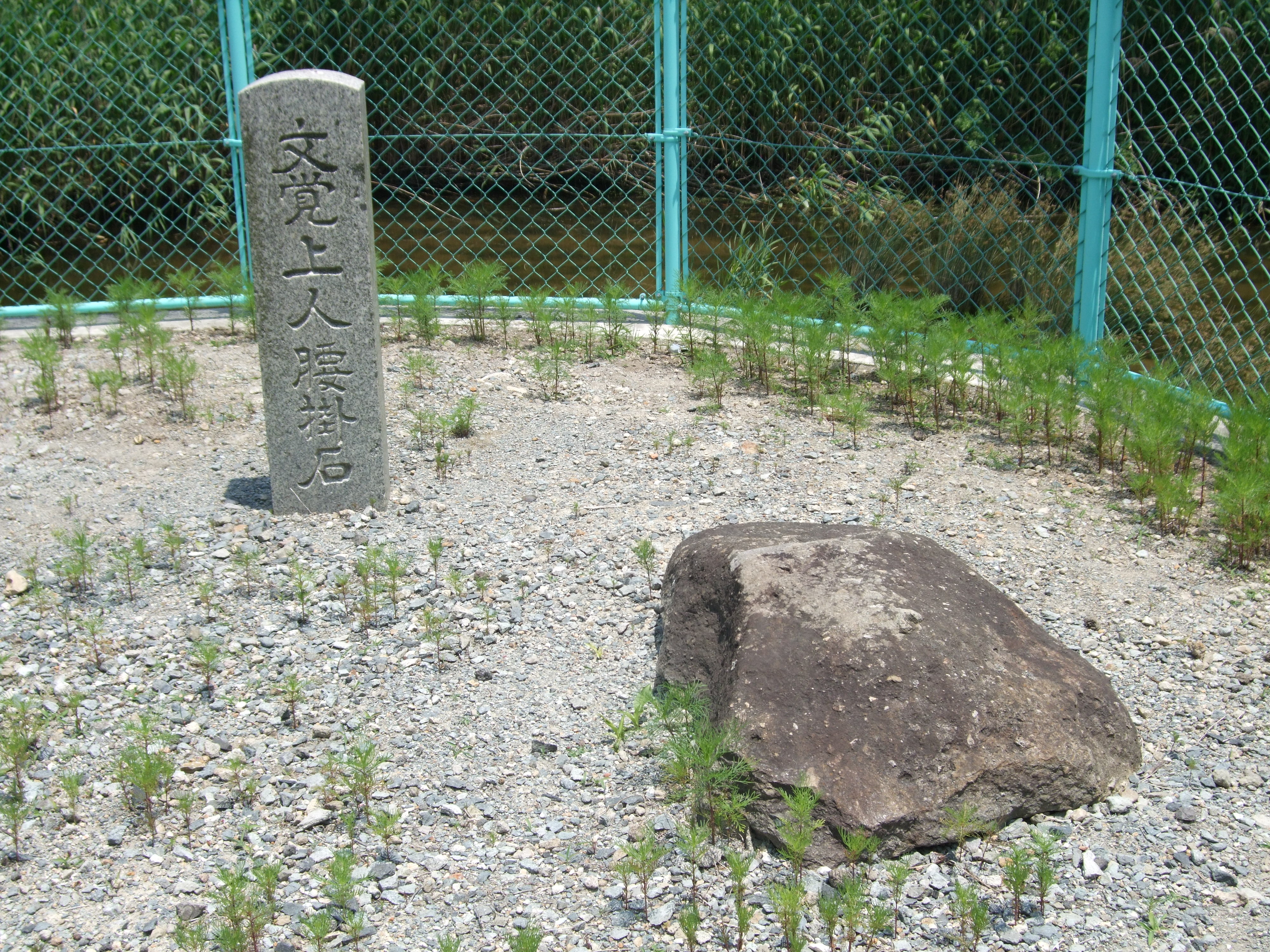 兵庫県揖保郡太子町原の福井大池のほとりに「文覚上人腰掛石」がある。